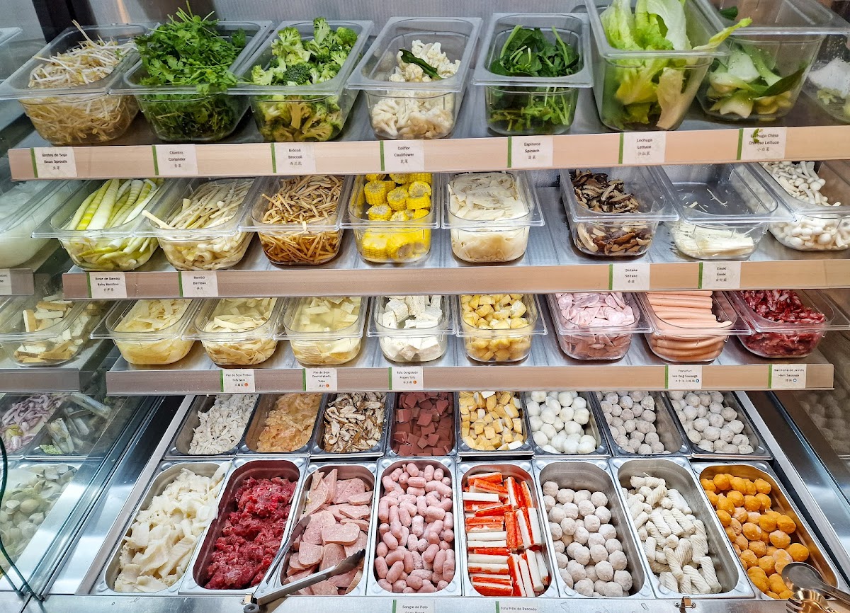 This is a very nice self service hot pot spot. You will find plenty of ingredients to garnish your hot pot and all sort of noodles. The concept is centered around Chinese cuisine and it is very tasty. They have a very good balance of spice for their broth and the cooking is perfect. There aren't a lot of tables but it is very calm and doesn't get extremely crowded. Overall a very nice experience and very tasty food!