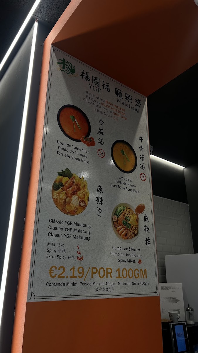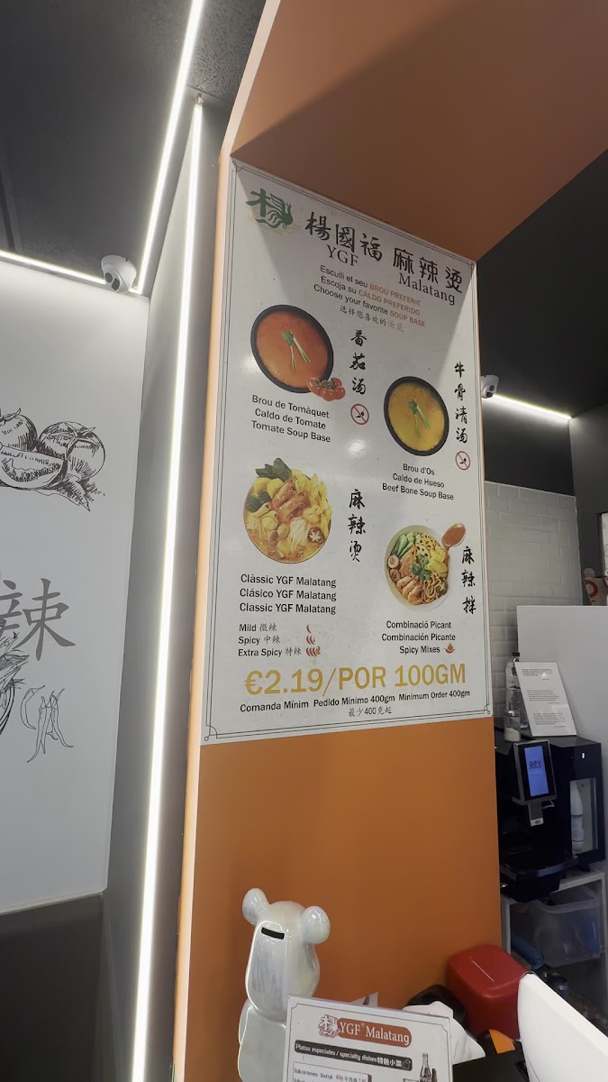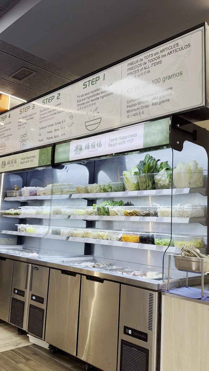 Welcome to YGF Malatang Spicy Hot Pot 杨国福麻辣烫, a delightful Asian restaurant nestled in the heart of Barcelona. This culinary gem offers an exciting hot pot experience where you can curate your own meal, choosing from a diverse selection of ingredients including noodles, fresh vegetables, and meats. The unique concept allows you to fill your bowl with just the right portions, which are then weighed before being immersed in your choice of flavorful broth.